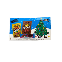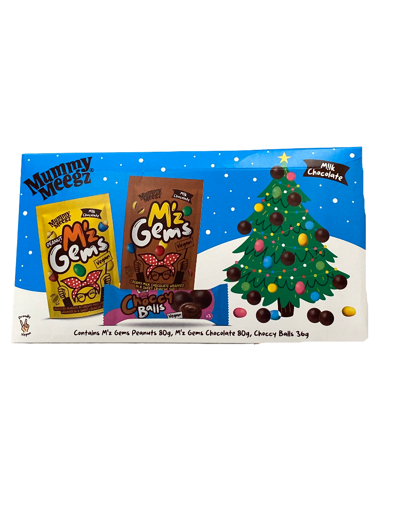 M'z Gems: sugar, cocoa butter, dried rice syrup, cocoa mass, almondpaste, rice starch, concentrate (radish, carrot, spirulina), glazing agents (gum arabic, carnauba wax), emulsifier (sunflower lecithin), vanilla natural flavouring and colouring (riboflavin).